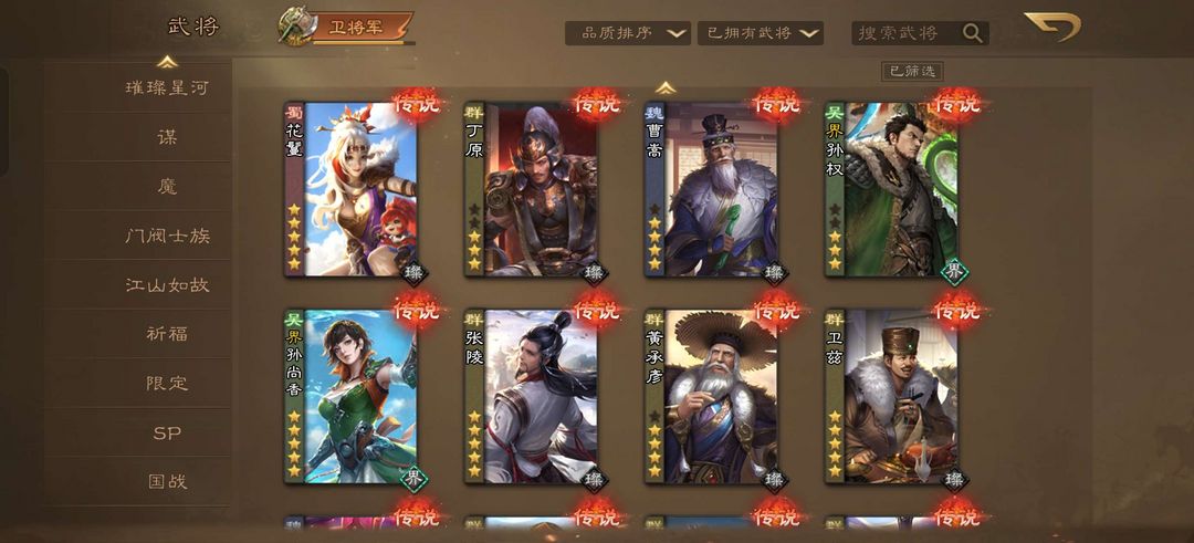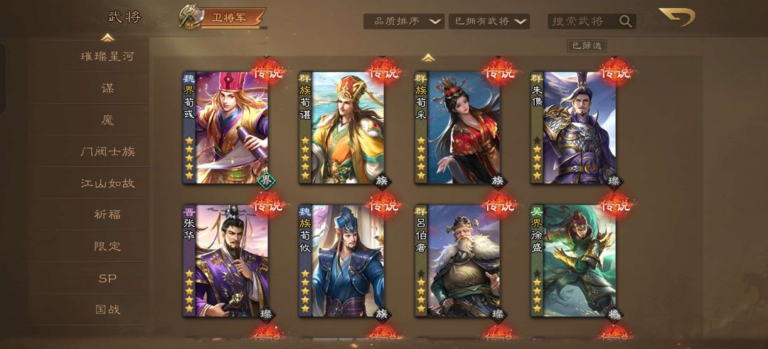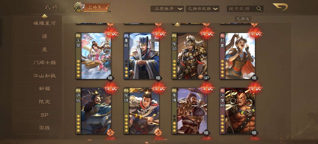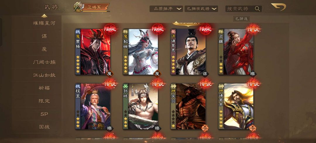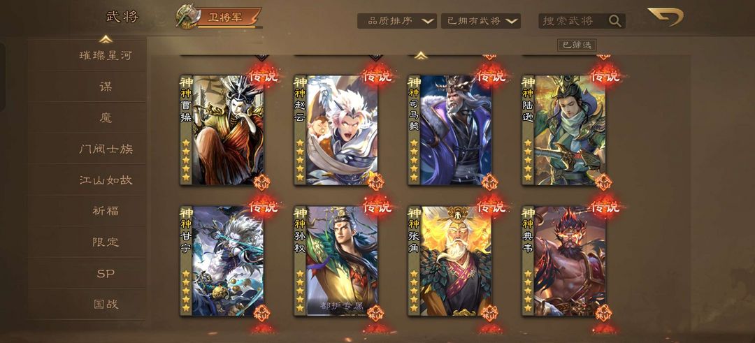 穷哥们自用的卫将军号,十个限定,传说差不多五十个,三废卡随便用,别动元宝玉玺这些就行