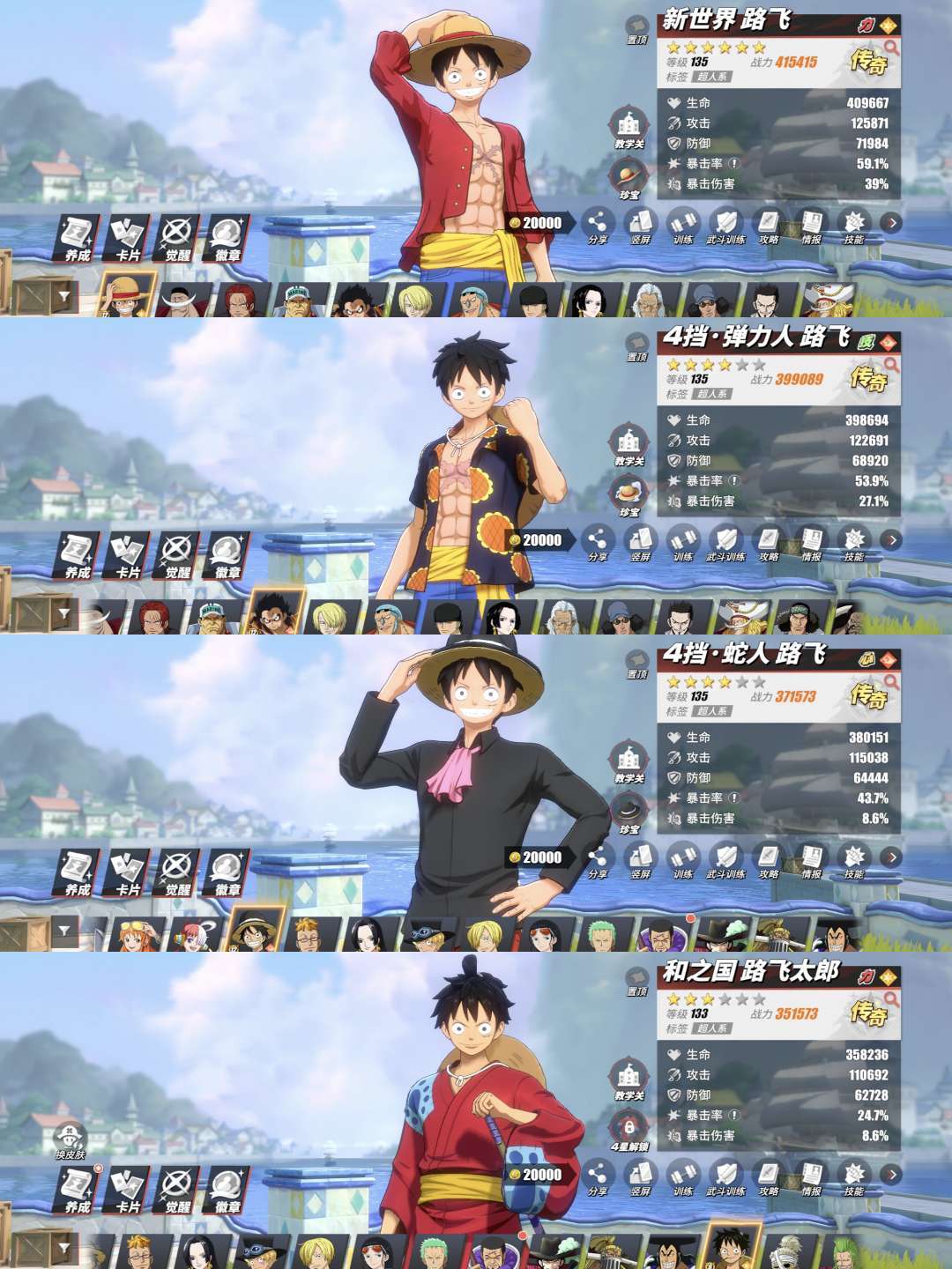 装备描述:鬼岛路飞、老沙已上线,游戏内的金币、体力都可以用,但不能使用金果、彩果和票,用于抽新人物。卡片属性都可以改。各种模式都可以玩,匹配、排位等。不能