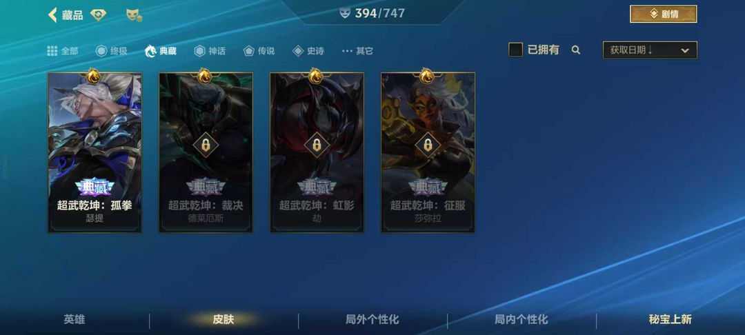 394皮肤✨高段位✨超武乾坤孤拳✨金猴耀世✨至臻西部魔影✨