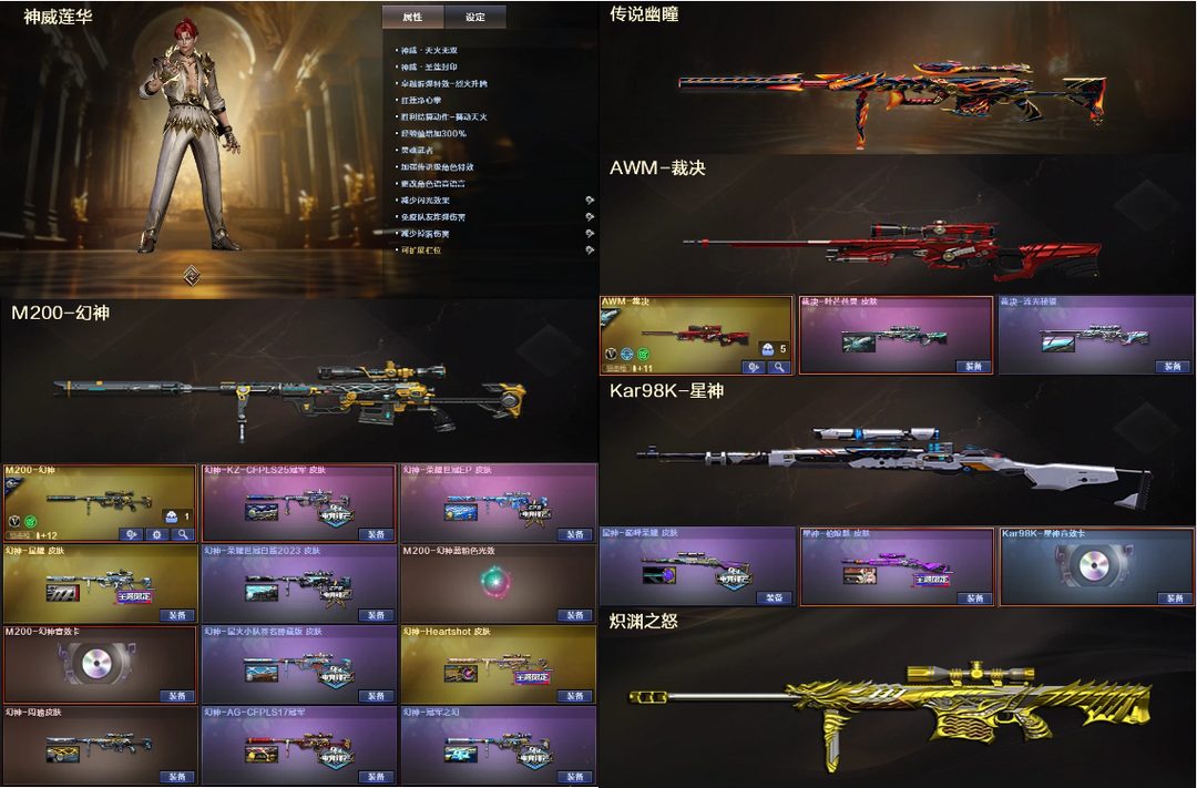 传说幽瞳4防神威莲华✅幻神9皮KZEP音效+星神白虎三件套✅裁决炽渊幻影QBZ天戎天袭+8满副4炽芒