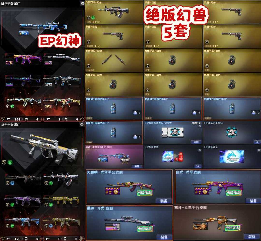 绝版幻兽5套❤EP幻神⑦带音❤裁决QBZ白虎三件套❤qbz-N9质量皮❤柯尔特电竞之星冠特-6盘6烈