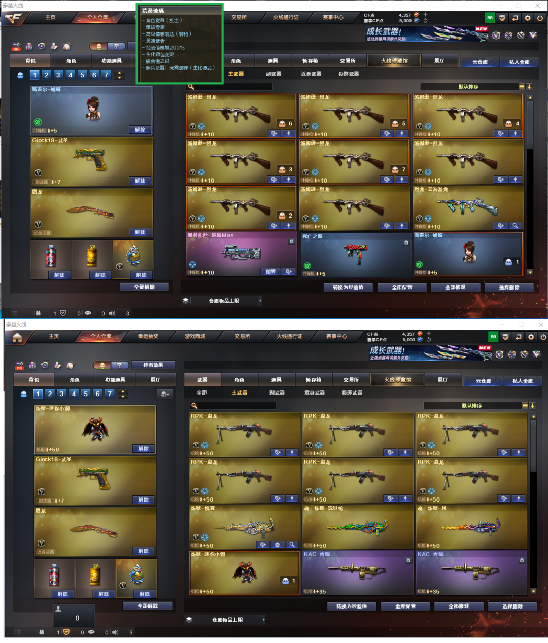 装备描述:排位:可以.------------爆破四防:幻神音效(黄忠皮肤)、王者星神、、、、USP柯尔特手枪、、、白虎、QBZ金色蔷薇、王者白虎、、、幻神音效、蔷薇音效、、、爆破四防(王者潘多拉、荒漠琉璃、鹰、雨棠)