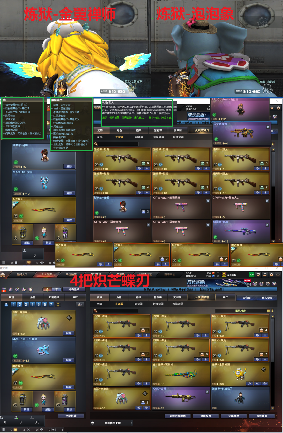 装备描述:排位:可以.-----------生化四防极品(生化模式换背包、看生化僵尸血量):需换弹、6盘6烈、炼狱泡泡象、炼狱-金翼禅师、斯太尔蝴蝶、异变镇魔者、FAL-救世主、双面神、MAC-千针棘鲨、MAC-龙宝、4把炽芒蝶刃、生化减速雷、超级对讲机、全部弹匣、、、、、、、、、、、、、、、爆破四防:幻神9皮+音效(EP荣耀、传奇欧欧、冠军之幻、星火小队、23白鲨、24AG冠军、星耀、电流骇客、喜狮迎春皮肤)传说幽瞳、98K星神、M200-竞技荣光、、、、、传说幽冥、USP雷暴、USP神工天巧、COP堕天神、3个USP冥王、4个23白鲨柯尔特、3个冠军之特、2个USP雷暴王者、王者破空枪刃、、、、G36幻影、神威天绫、加利尔ACE-天袭、传说圣谕、传说夜影(7777序列号)、传说辉光、FAMAS G2-天戎、QBZ银翼、白虎、、、幻神音效、裁决音效、幻影音效、蔷薇音效、毁灭音效、白虎音效、、、生化四防(神威莲华、隼、礼物老人)、爆破四防(传说星骇、妮妮、宋雨琦、关小雨、机械姬、王者春、王者云悠悠、王者魅影)