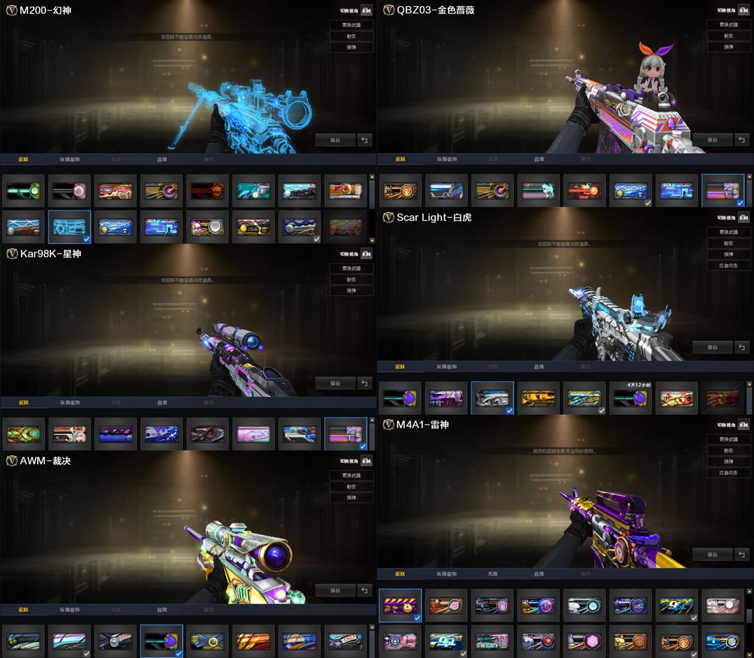 5套幻兽光海夜岚幽瞳幻影天戎⭐幻神卡KZ电竞EP15皮裁决卡8皮⭐QBZ虎鱼电竞8皮白虎白鲨百战6皮