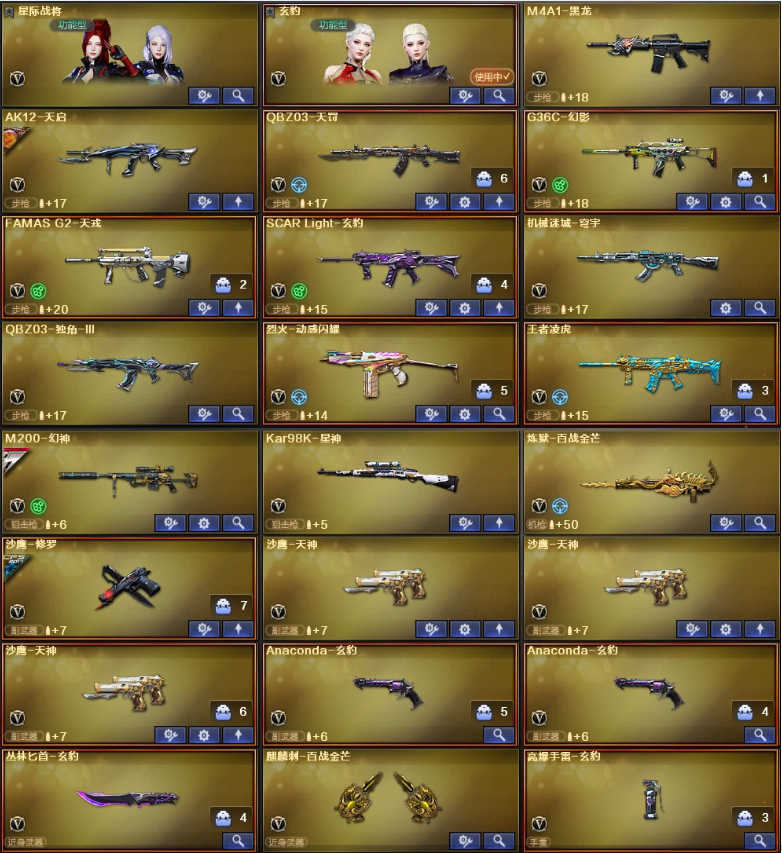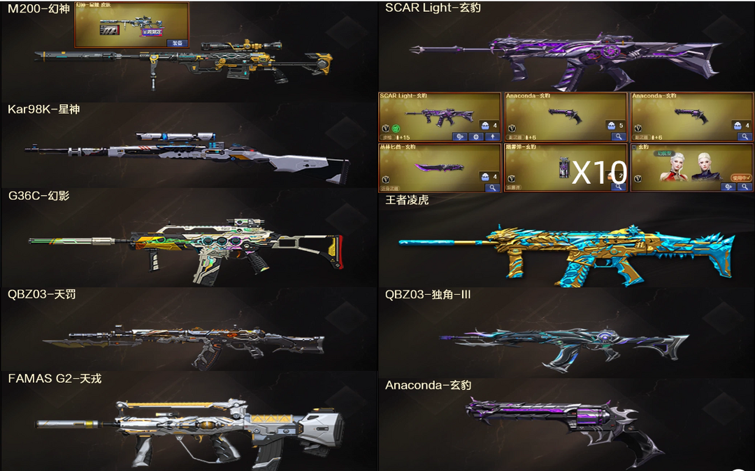 玄豹全套10烟❤幻神星神+王者凌虎G36C幻影天戎QBZ天罚独角兽❤左轮匕首+4防玄豹4防魅影