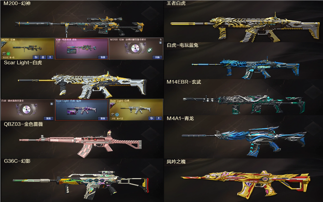 白虎暗星音效卡+幻神❤G36C幻影QBZ蔷薇王者白虎玄武青龙凤呤之魄❤炼狱死亡6烈龙❤4防貂蝉潘多拉