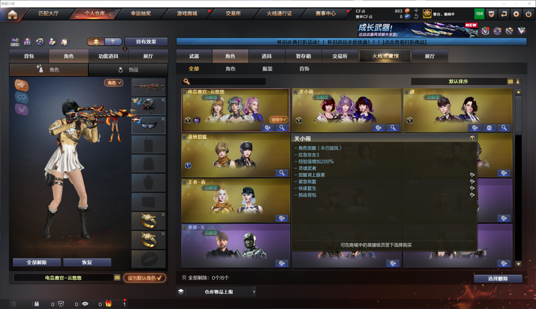 限制: 租号3次及以上 |装备描述:者武器:王者风势-觉醒版;超新星-悦享-觉醒版;炫金千变 英雄武器:柯尔特-荣耀世冠白鲨2023;M200-幻神;AK-47-猩红传说;Barrett-暗月传说;屠龙;AWM-裁决;传说夜影;烟雾弹-竞技荣光;闪光弹-竞技荣光;黑骑士-海王;沙鹰-天神;Kar98K-星神;AK12-天启;汤姆逊-烈龙;9A91-烈火;传说幽冥;传说幽瞳;M4A1-黑龙;擎天-竞技荣光;高爆手雷-竞技荣光;柯尔特-竞技荣光;M4A1-雷神;M200-竞技荣光;炽芒蝶刃;AK47-火麒麟;Barrett-毁灭;AA-12-雷霆;擎天;M4A1-死神;麒麟刺;超新星-热带奇洋;QBZ03-金色蔷薇;龙啸-热带奇洋;闪光弹-云龙;高爆手雷-云龙;Scar Light-白虎;烟雾弹-云龙;COP 357-云龙