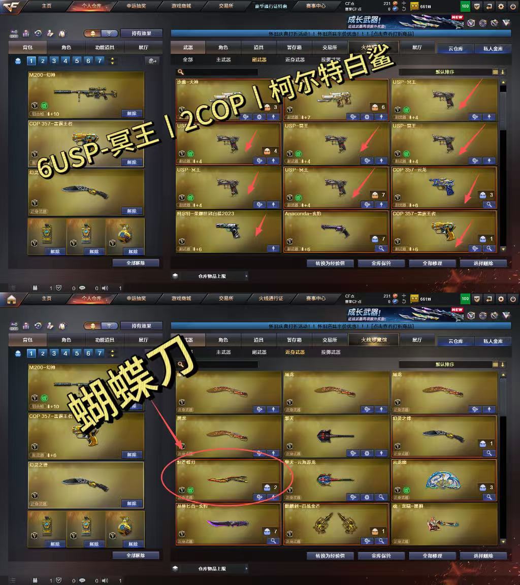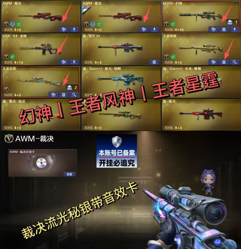 流光裁决音效卡✨幻神王者风神星霆✨满副武6USP冥王✨幻影玄豹QBZ法玛斯✨6烈枪娘蝴蝶刀✨四防晴雅