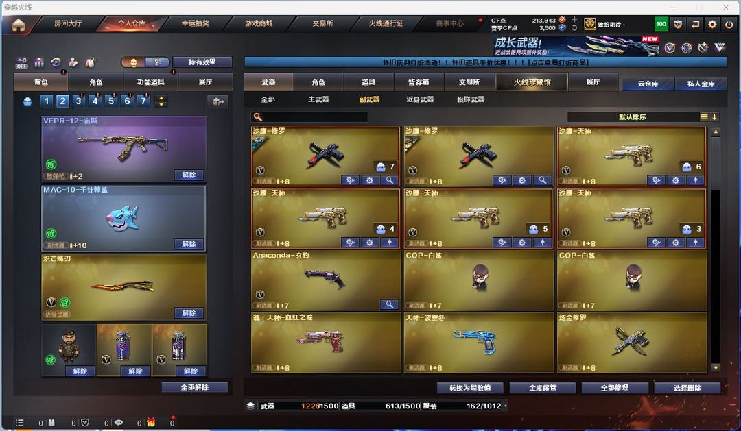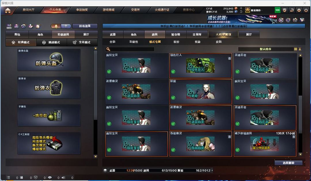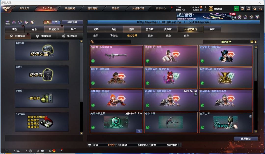 限制: 租号5次及以上 | 撤单率<35%才可租用此帐号装备描述:生化:四防神威莲华,四防隼,炼狱泡泡象,炼狱迎春啸狮,炼狱,6盘龙,6烈龙,斯太尔萌兔,宙斯,清道夫蛇影双娇,清道夫,2炽芒蝶刃蝴蝶刀,幻影猎人,圣拳蜀雪,机械猎手-幻灵猎姬,伪装者,变异宝贝,矮子 生化皮肤齐全,弹夹齐全 不开挂随便怎么玩,2异变镇魔者
