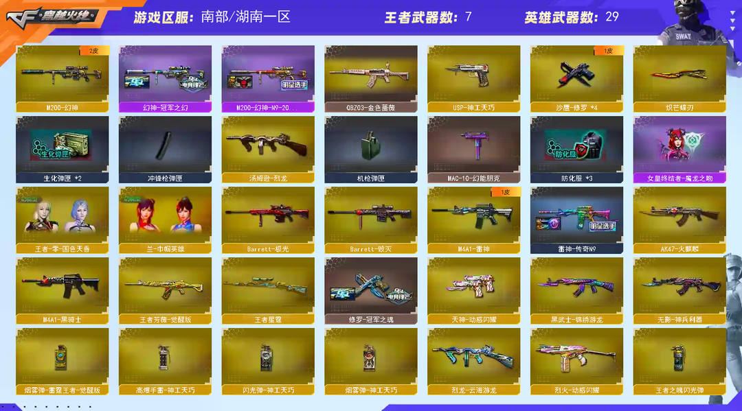 枪王1北部王者零幻神冠幻n9皮蝶刃usp神功天巧王者星霆蔷薇+极光毁灭雷神火麒麟黑骑士