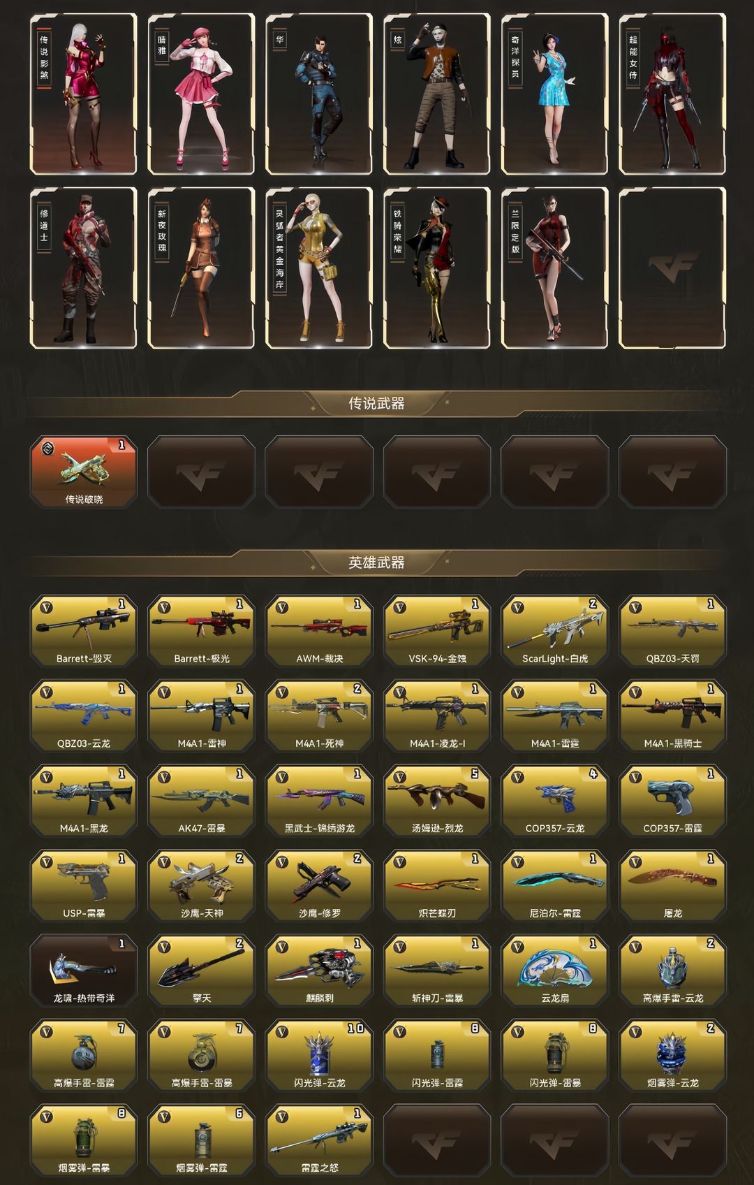 装备描述:四防传说影煞⭐传说破晓⭐炽芒蝶刃⭐斯泰尔蝴蝶⭐烈龙⭐MK5-炽火炎龙⭐白虎⭐雷暴⭐生化号