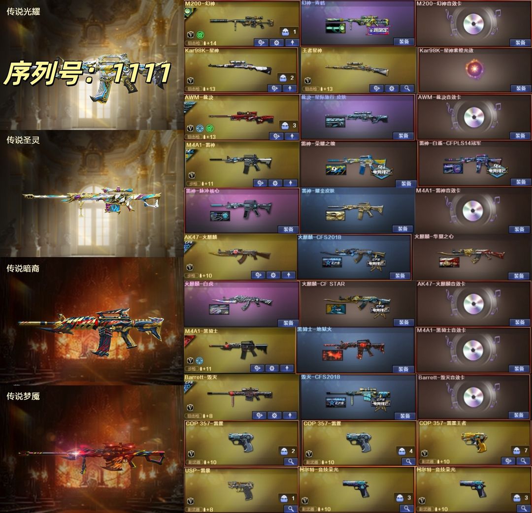 30豆/18号【南部】序列号1111⭐幻神青鹤皮+音⭐裁决套+星神⭐蔷薇+G36幻影⭐cop雷暴*3
