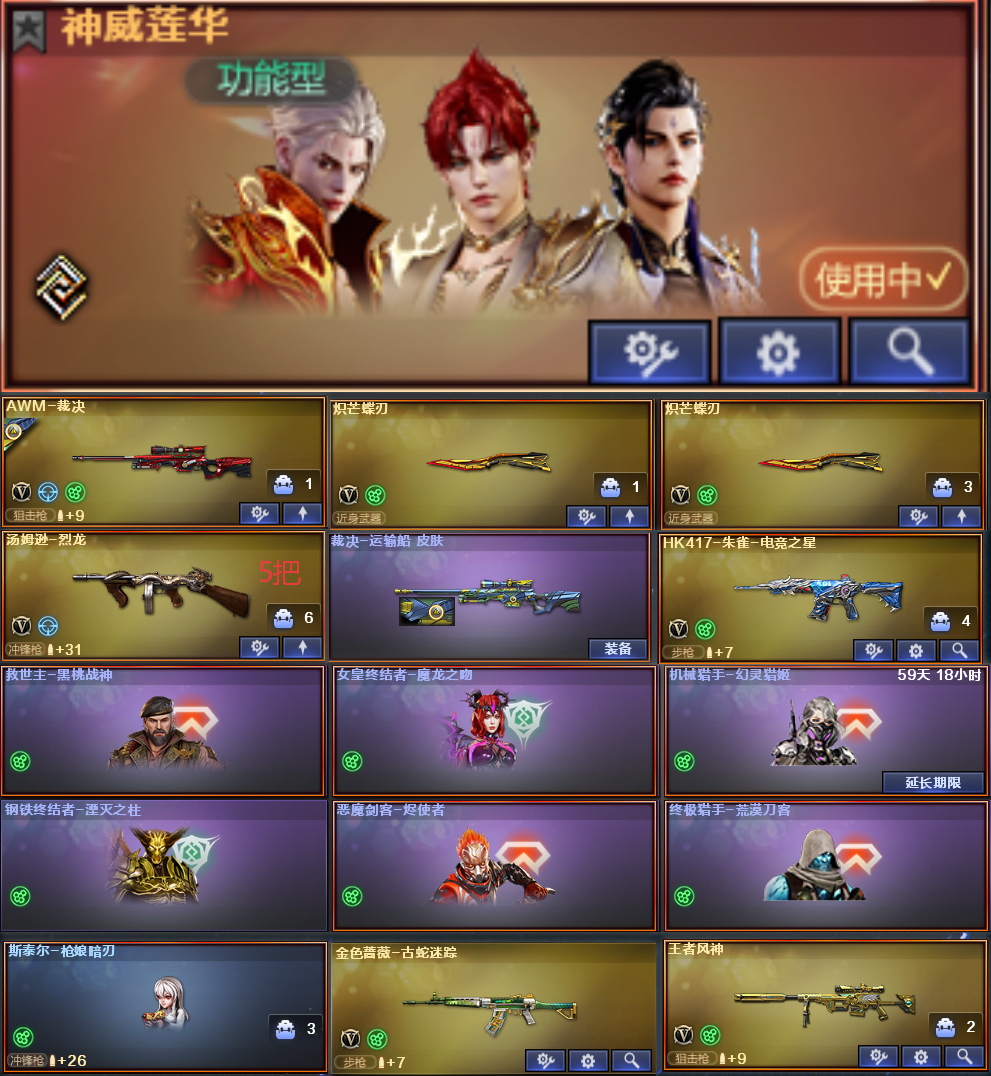 神威莲华5烈龙斯泰尔枪娘裁决②炽芒蝶刃风神古蛇蔷薇朱雀生化③猎皮