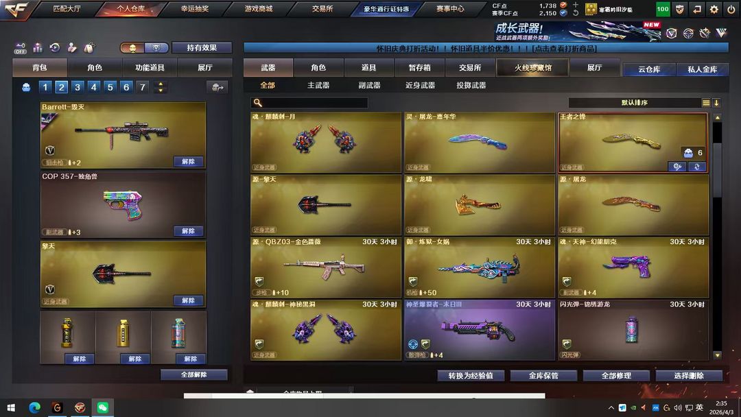 限制: 租号3次及以上 |装备描述:12年老兵玩家退游挣点小费 且行且珍惜 AK47-火麒麟;M4A1-黑龙;AWM-天龙;Scar Light-白虎;M14EBR-玄武;Barrett-极光;屠龙;加特林-炼狱;沙鹰-修罗;机械迷城-穹宇;黑武士-锦绣游龙;AK-47-猩红传说;AK47-无影;AK47-黑鲨;擎天;AK47-黑武士;M4A1-雷神;M4A1-黑龙;加特林-炼狱;QBZ03-金色蔷薇;麒麟刺;AWM-天龙;龙啸;M4A1-黑骑士;RPK-盘龙;Barrett-毁灭;M4A1-千变;沙鹰-修罗;AN94-超新星