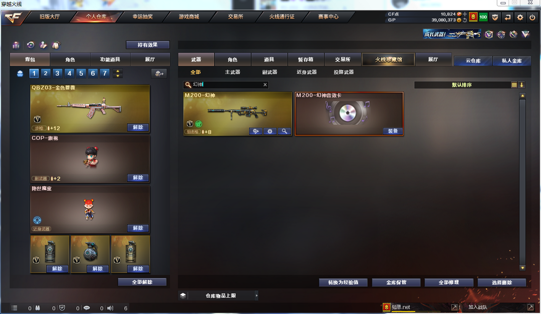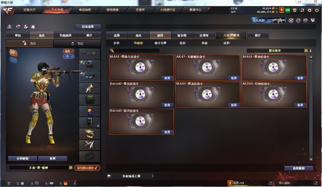 装备描述:幻神音效卡QBZ朱雀CAT毁灭AG冠军之怒AG虎将耀金星空套幻火毁黑雷六音效卡挑战满套装