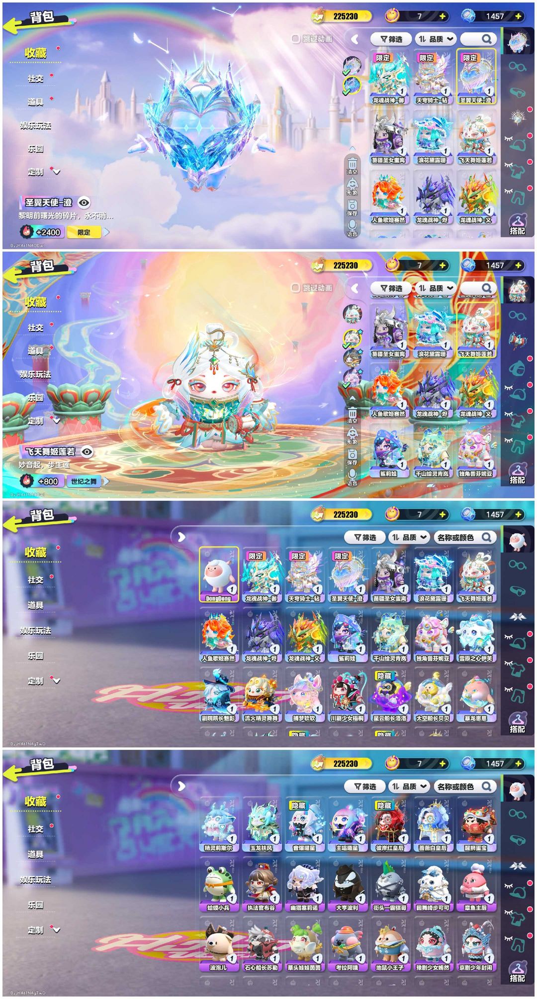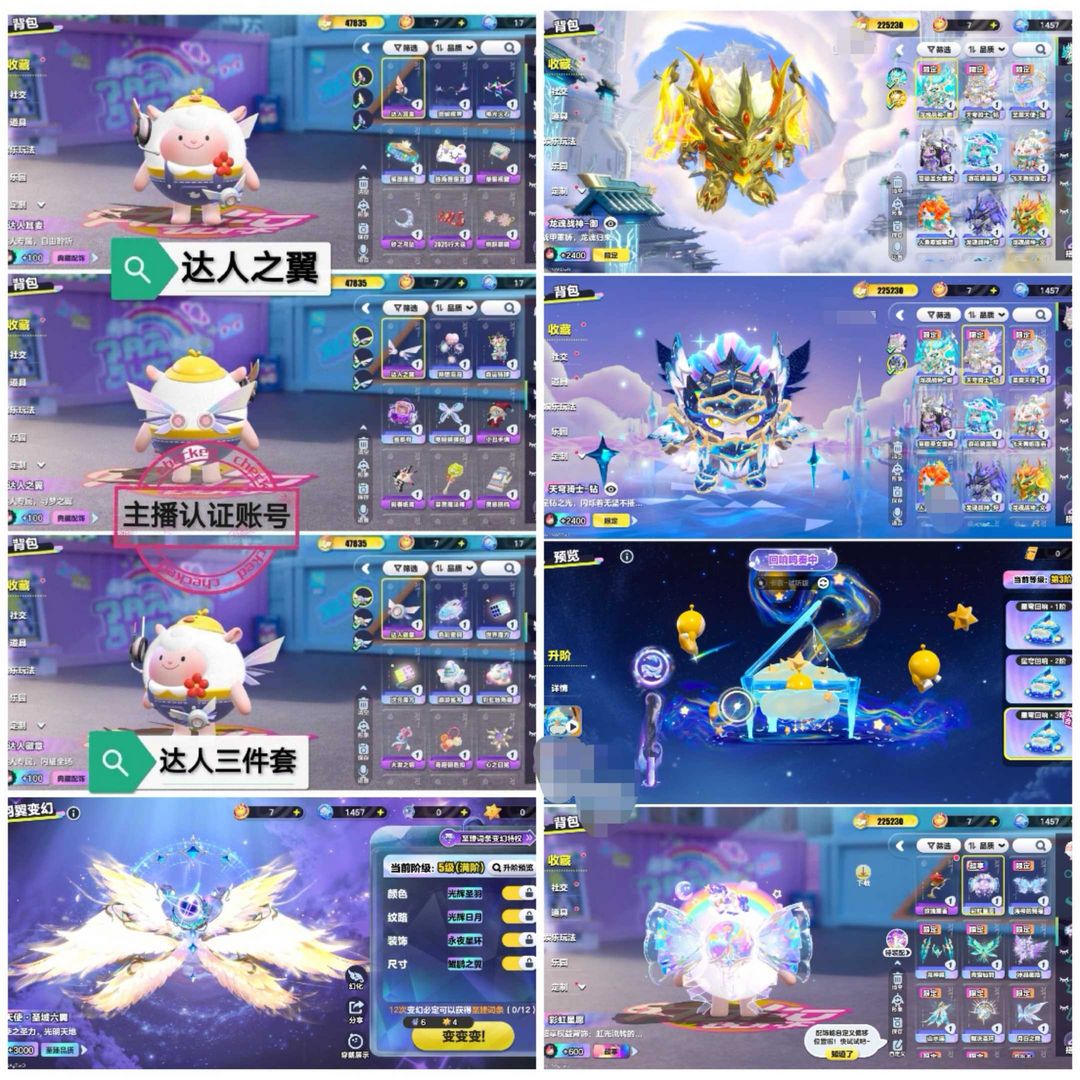 装备描述:22万潮主播号☀达人之翼☀满级圣域六翼翅膀☀满级钢琴☀黄金大机甲☀三只小羊红小豆懒羊羊☀彩虹星愿