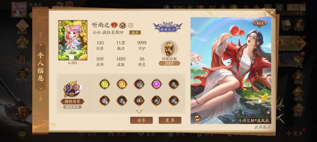 509将骠骑10神武除华佗全动皮6威5大谋纳贤阴间全齐!300灯顶阴全齐,纳贤阴间全齐!