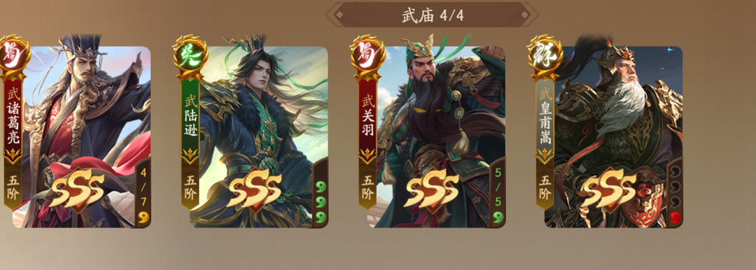 597将4武庙全阴大将军,锦绣皮肤动态非常多,极品将灵装备,武诸葛武陆逊武关羽都有皮肤