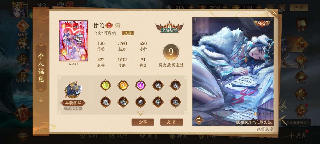 谋朱然桓阶❤️472将8神10乐3威3大谋+多新将皮肤