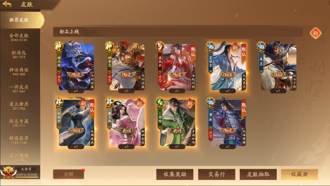 全武庙614将大将军,全扩仅缺高山上兵,皮肤齐全,威孙策孙尚香,马超黄忠限动已拿,更新看简介