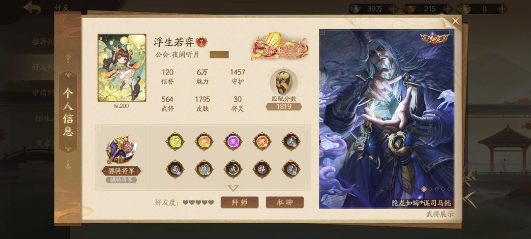 限制: 租号1次及以上 | 撤单率<30%才可租用此帐号装备描述:【武陆逊+准全阴全灯+臻玉鎏金】562将骠骑+十神武五威二十一谋(七大谋)九乐五隐+臻玉鎏金+武陆逊+神马超(惊雷动)神张飞(山河限+双传)神张角(震泽动)神邓艾(撼宇动)神典韦神许褚(虎跃动+摧城限)神华佗(五灵传)神黄忠神庞统(臻华动)神姜维(炽剑动)+威张辽威吕布(传)威董卓威马超威孙权(传)+谋周瑜(江山限)谋鲁肃谋司马懿(隐龙动)谋郭嘉谋贾诩谋荀彧谋姜维谋司马师(传)谋关平(传)谋邓艾+乐蔡文姬(姝丽动+和鸣传)乐诸葛果(传)乐祢衡(传)乐大乔(传)乐小乔(限动)乐貂蝉(传)乐周瑜+钟毓夏侯徽夏侯玄张怀(限)刘衿刘佩庞宏庞凤衣(传)袁胤(传)许靖(丹枫动+枫红传)诸葛京(传)孙翎鸾芳兰(限动+传)周宣(幻华动)薛灵芸(翠鸾金蛟动)曹芳(冰天限+传)张嫙(双姝动)曹金玉(青花瓷动)卢弈(姝丽动+黛眉传)张琪瑛(至臻动+潋滟动)笮融(佛魔动)刘晔(焚天限)威孙尚香等!全将星全国战!