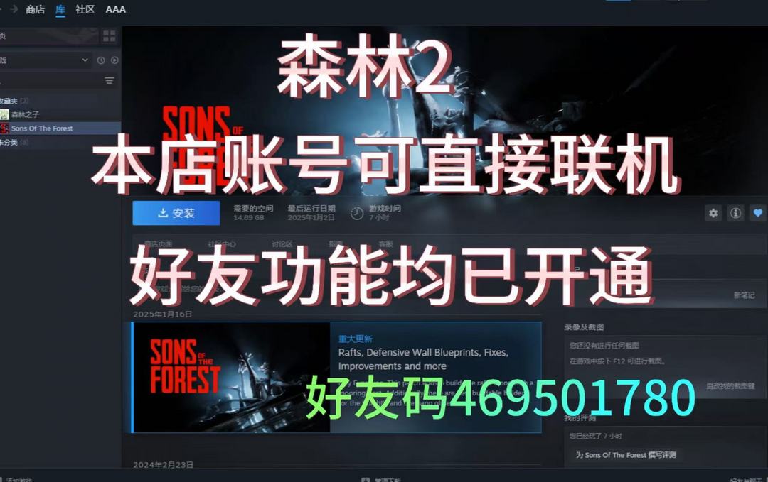 森林2❤️森林之子✅终极版✔️商城清空✔️全DLC✔️社区开通✔️可联机✔️同标题可直接联机