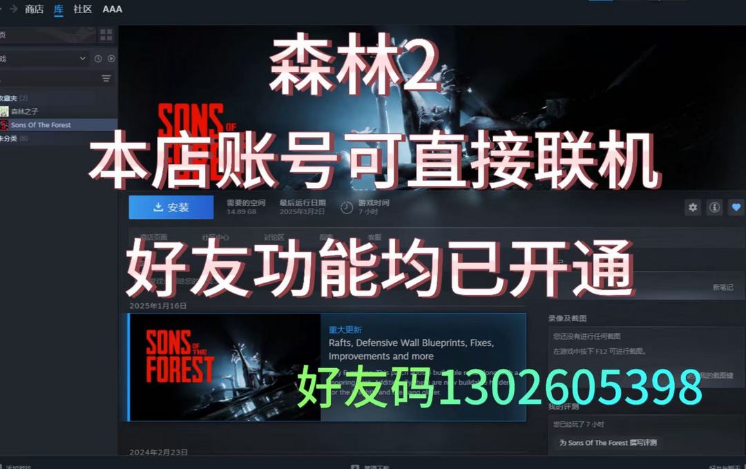 森林2❤️森林之子✅终极版✔️商城清空✔️全DLC✔️社区开通✔️可联机✔️同标题可直接联机