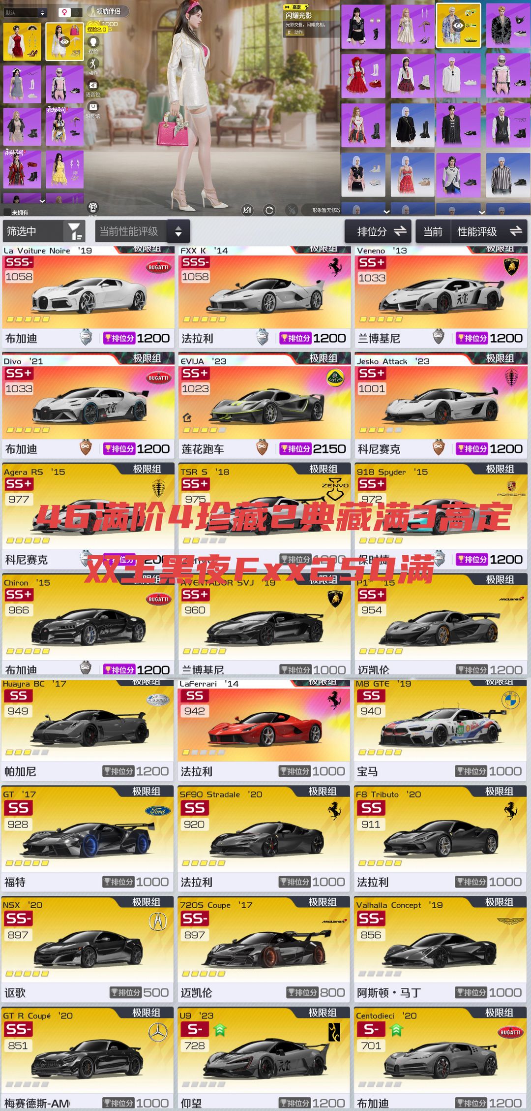 三端互通✨46满阶3高定/有第六元素✨4珍藏2典藏满阶✨满阶双王黑夜Fxx 250毒药divo雷文顿