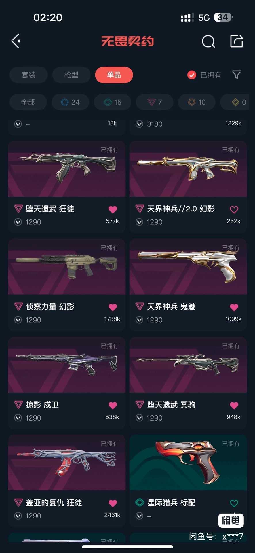 装备描述:可排位+显卡爪刀+塑水宗狂徒飞将+雷切+虚空狂徒+弃王大狙+盖亚狂徒+侦查幻影