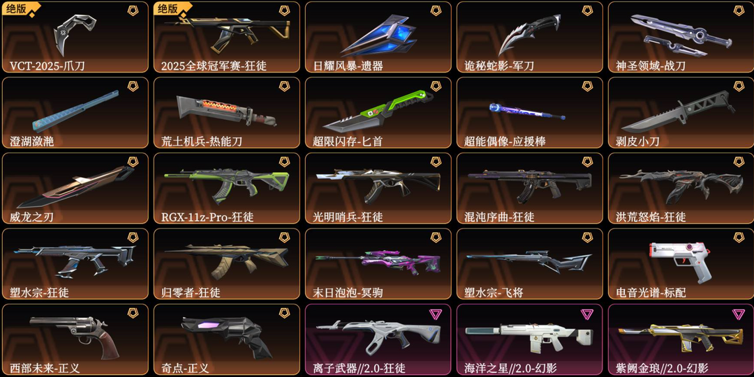 可排位大库存☆25爪刀☆25全球套☆混沌序曲☆塑水宗☆RGX☆盖亚☆威龙☆归零☆离子☆各种散件☆炫彩