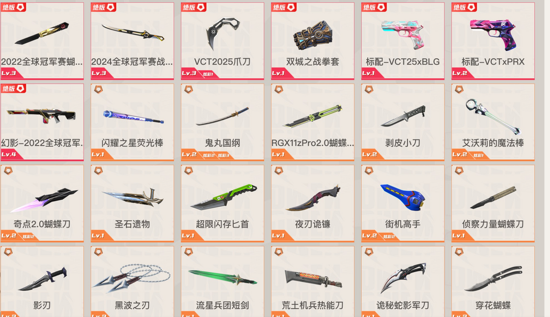 可排位✅顶级20W库存✅22冠军套⭐24冠军套⭐VCT爪刀⭐奇点2.0套⭐虚空遗迹全套⭐光明哨兵全套