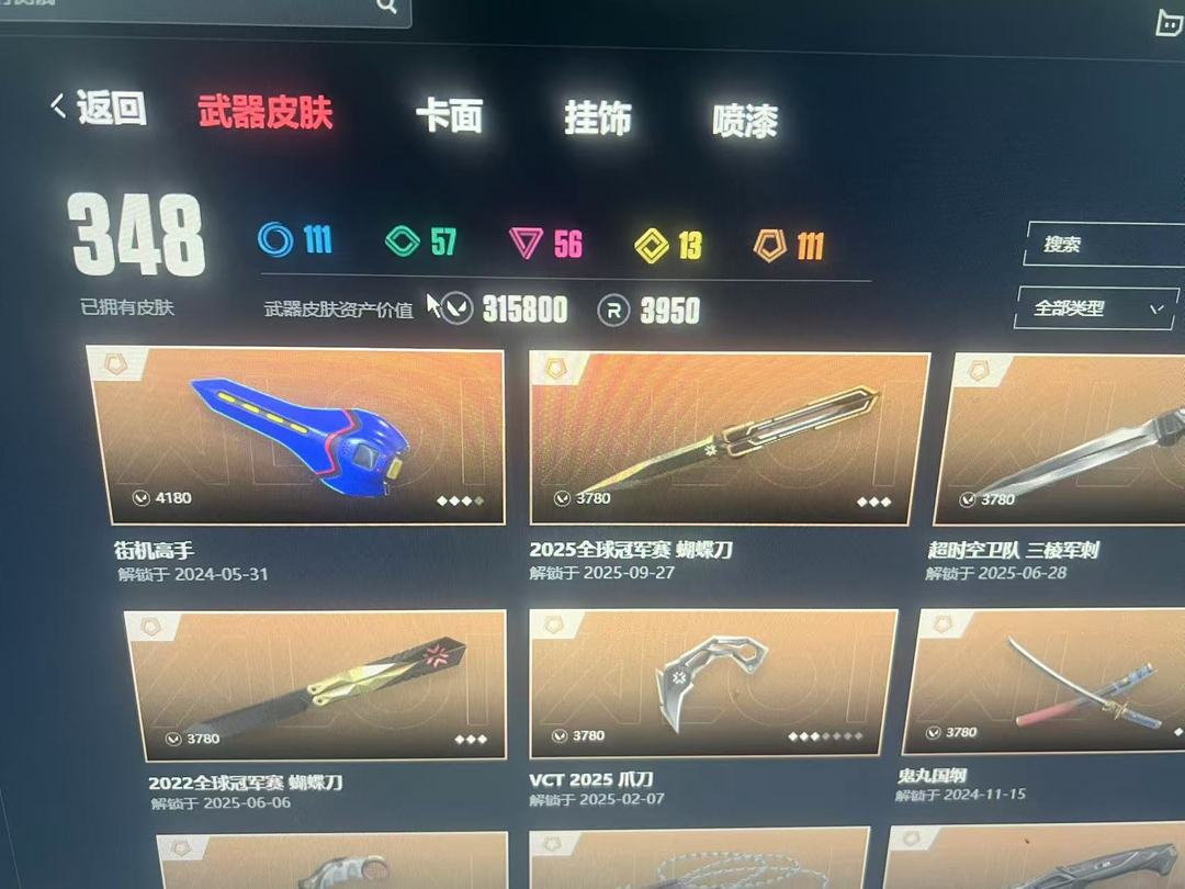 装备描述:禁止排位/VCT爪刀 21冠军套装 22冠军套装 双城套装 电玩套装 781-A套装 塑水宗套装 莲花套装 西部套装 光荣异象套装 虚无套装 显卡2.0套装 流脓套装 苍龙套装 摩托套装 归零者套装 破败套装 光明哨兵2.0套装 侦察套装 离子套装