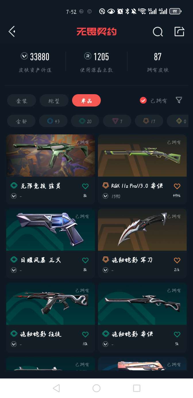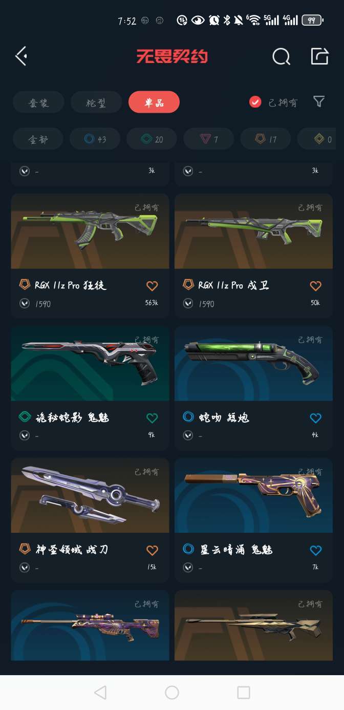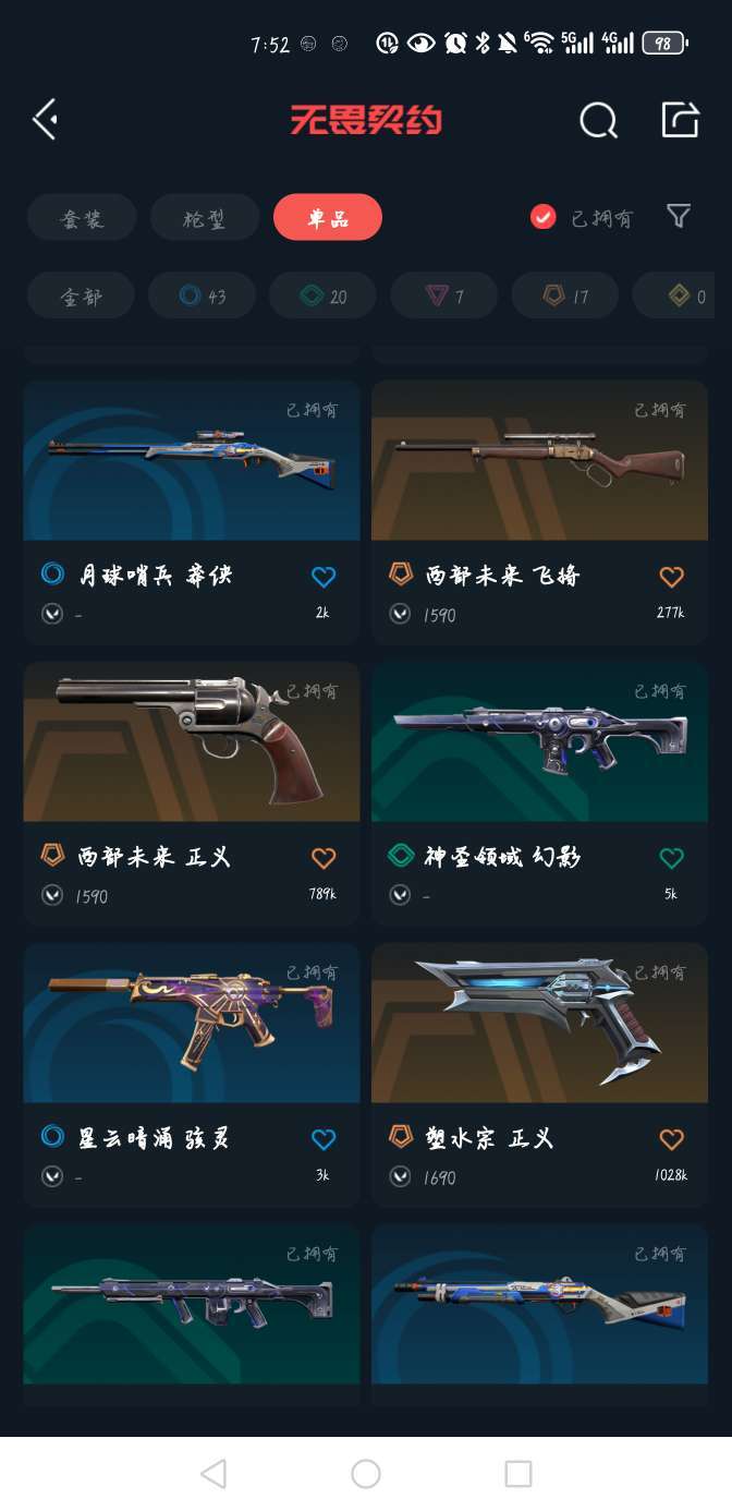 装备描述:24冠军幻影,般若奇点套装,混沌狂徒,显卡戍卫狂徒莽侠,归零者冥狙,塑水宗 西部正义,盖亚 西部鸟狙,盖亚ak,离子大狙