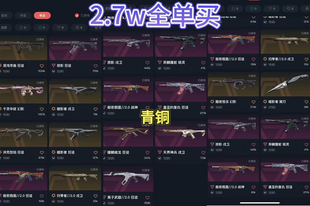 冻结看详情⚡2.7w 可排⚡掠影 混沌 盖亚 流脓 AK ⚡莲花 M4⚡菜花刀