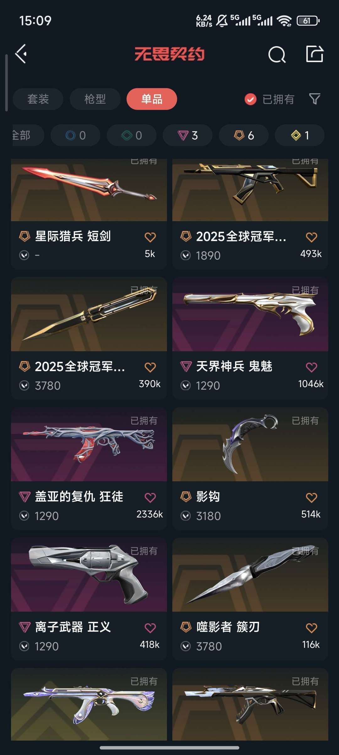 装备描述:猫猫,盖亚,25冠军套,光明哨兵ak,天界鬼魅,离子正义,噬影者簇刃,影刃爪刀