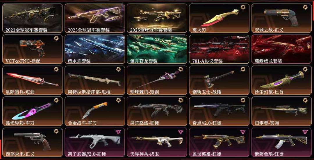 禁排21冠军套,离火刃,23.24冠军套,塑水宗套装,偃月苍龙套装,其他皮肤自己看图,该账号已备案