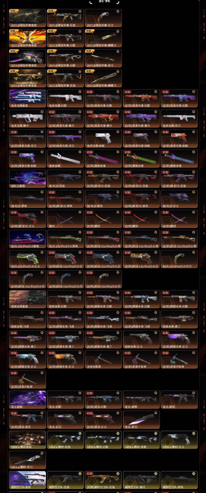 装备描述:颗秒套超时空卫队21全球22全球24全球25全球双城之战电音光谱创纪元显卡3.0西部未来奇点2.0上古龙炎掠影2.0耀鳞威龙朋克3.0异鳞魔蛇盖亚的复仇堕天遗武苍龙之刃vct爪刀沙尘幻旅匕首澄湖澈艳显卡2.0蝴蝶刀落英飞旋奇点2.0蝴蝶刀剥皮小刀盖亚之榅穿花蝴蝶多弥尔的复仇狂徒滋滋特攻队狂徒光荣异象狂徒显卡狂徒显卡2.0幻影混沌序曲狂徒双城之战狂徒毁灭骑士幻影黯夜怪谈幻影塑水宗狂徒全息波普撩犬归零者2.0幻影偃月苍龙狂徒协议幻影艾莉沃的梦之翼狂徒源能者娱乐系统幻影神中神罚幻影离子武器2.0狂徒盖世英雄狂徒紫阙金琅狂徒侦察力量幻影冰点凝结狂徒般若假面幻影海洋之星狂徒日冕雄狮狂徒掠影狂徒混徐序曲冥驹归零者冥驹偃月苍龙冥驹无限星环冥驹起源冥驹离子武器冥驹艾莉沃的梦之翼奥丁混沌序曲蜂刺起源雄鹿th标配t1标配te标配sen标配bbl标配g2标配edg标配lev标配prx标配塑水宗正义艾莉沃的梦之翼鬼魅源能者娱乐系统鬼魅天界神兵鬼魅紫阙金琅标配离子武器正义日冕雄狮正义