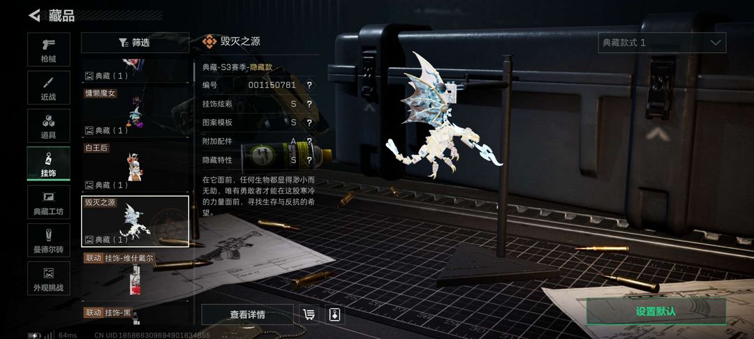 装备描述:刀皮、枪皮、挂饰皮,高体力有 A 大,现金很多适合打单