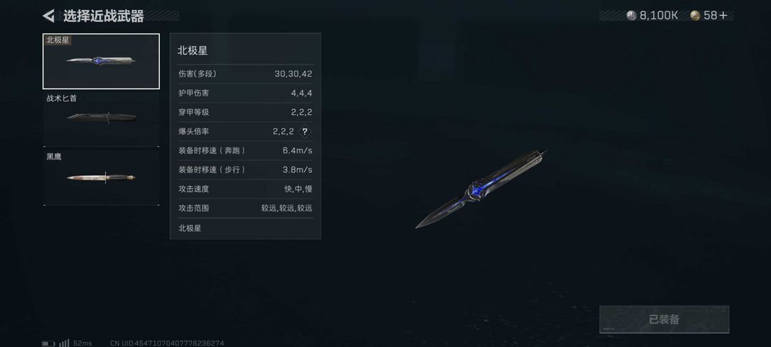 装备描述:1个亿纯币 刀皮:北极星,露娜皮肤