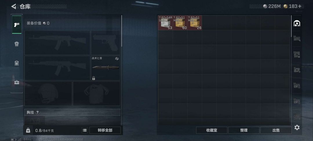 装备描述:全角色+全地图+哈夫币226M 有3*3体验卡
