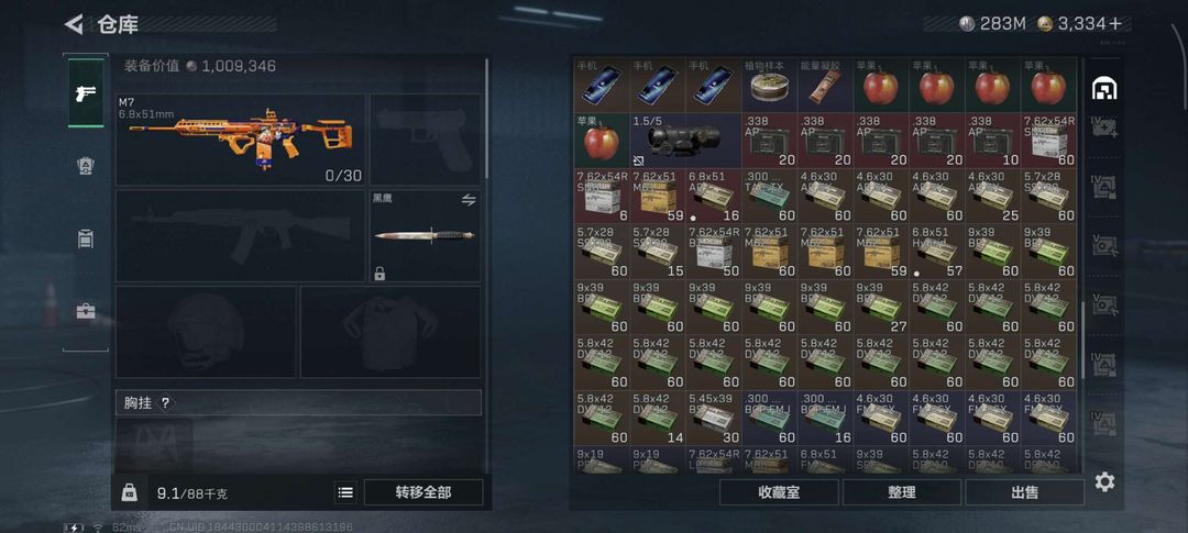亿级哈夫币 露娜红狼皮肤电锯低kd唐人号满体满负重,90发a大14个红甲随便用,甲修也可以,仓库其他东西就不要动