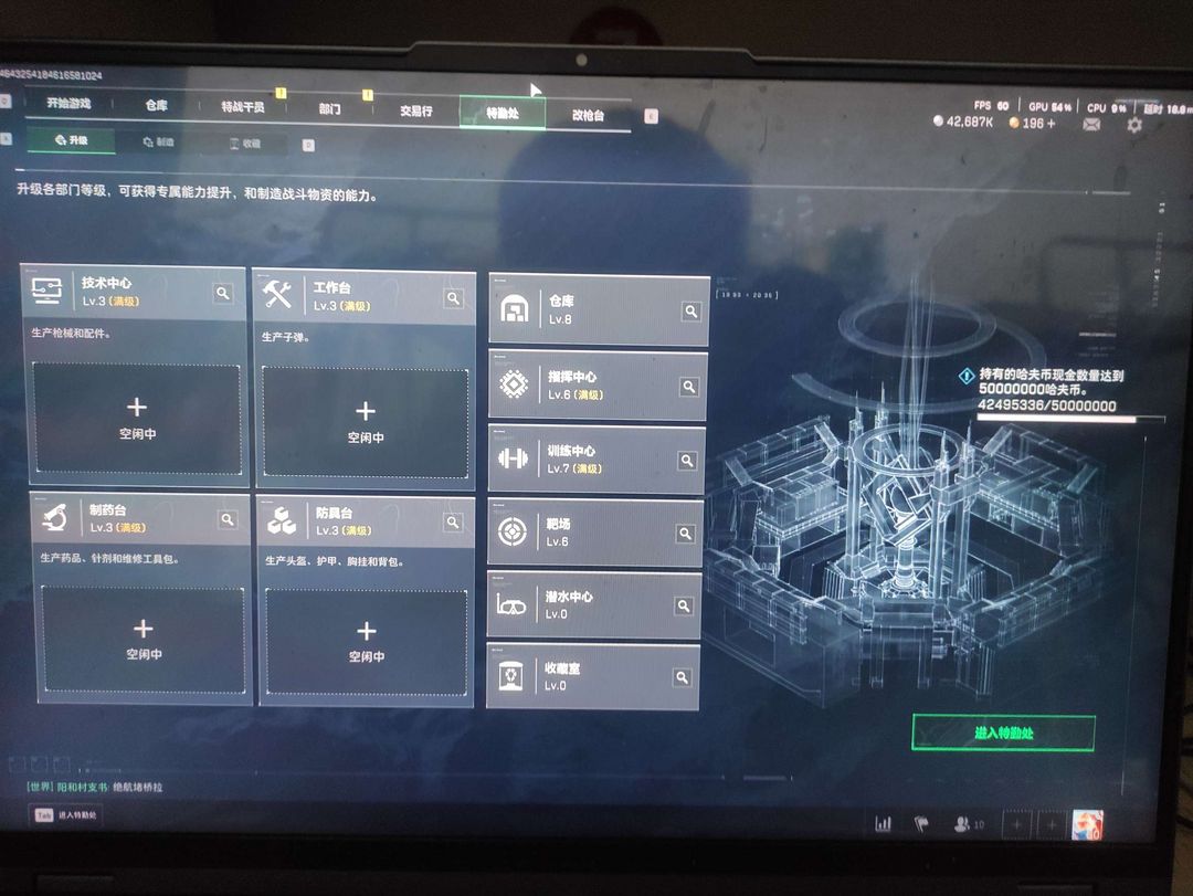 千万哈夫币 现金42687k赛季3x3,训练,指挥中心满级,俩金皮,一红皮,红狼,无名,麦晓雯
