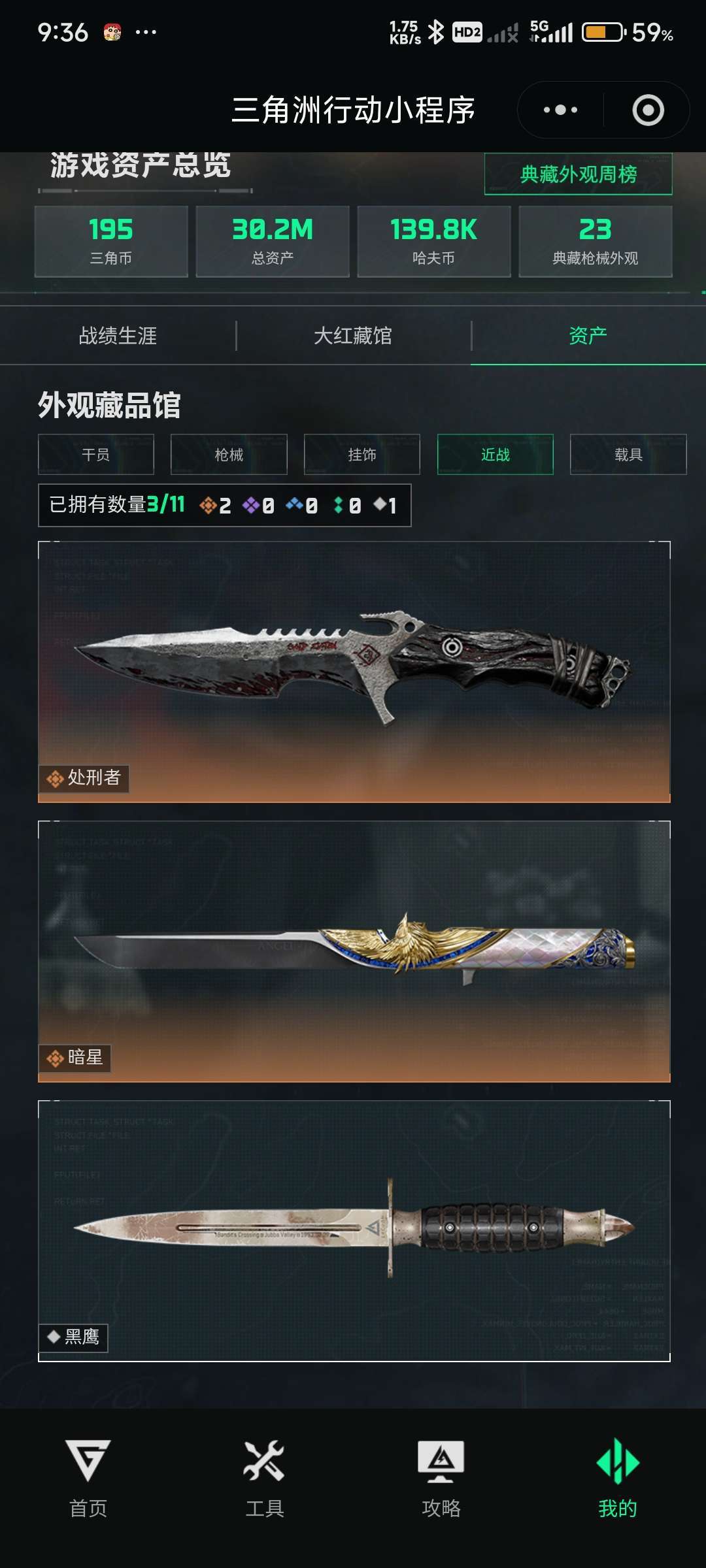 装备描述:红皮蚀金玫瑰若干金皮,刀皮暗星二级处刑者,44金枪皮,满级体力,猛攻号