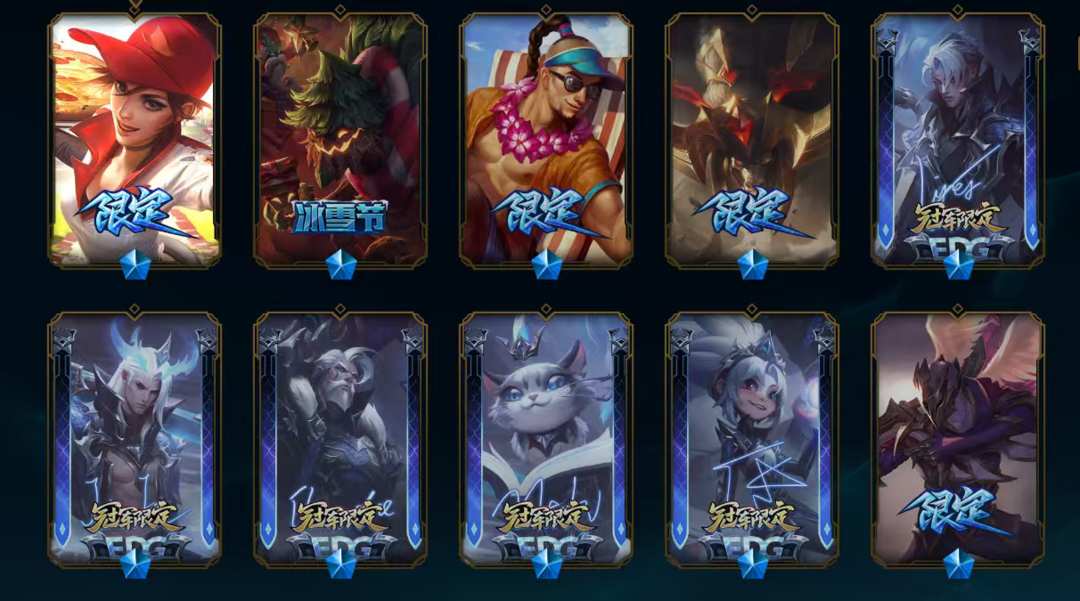 西部魔影卢锡安,双城之战 2 破碎者金克丝,神龙尊者卡莎,灵魂莲华瑟提,神王诺手,EDG 冠军签名