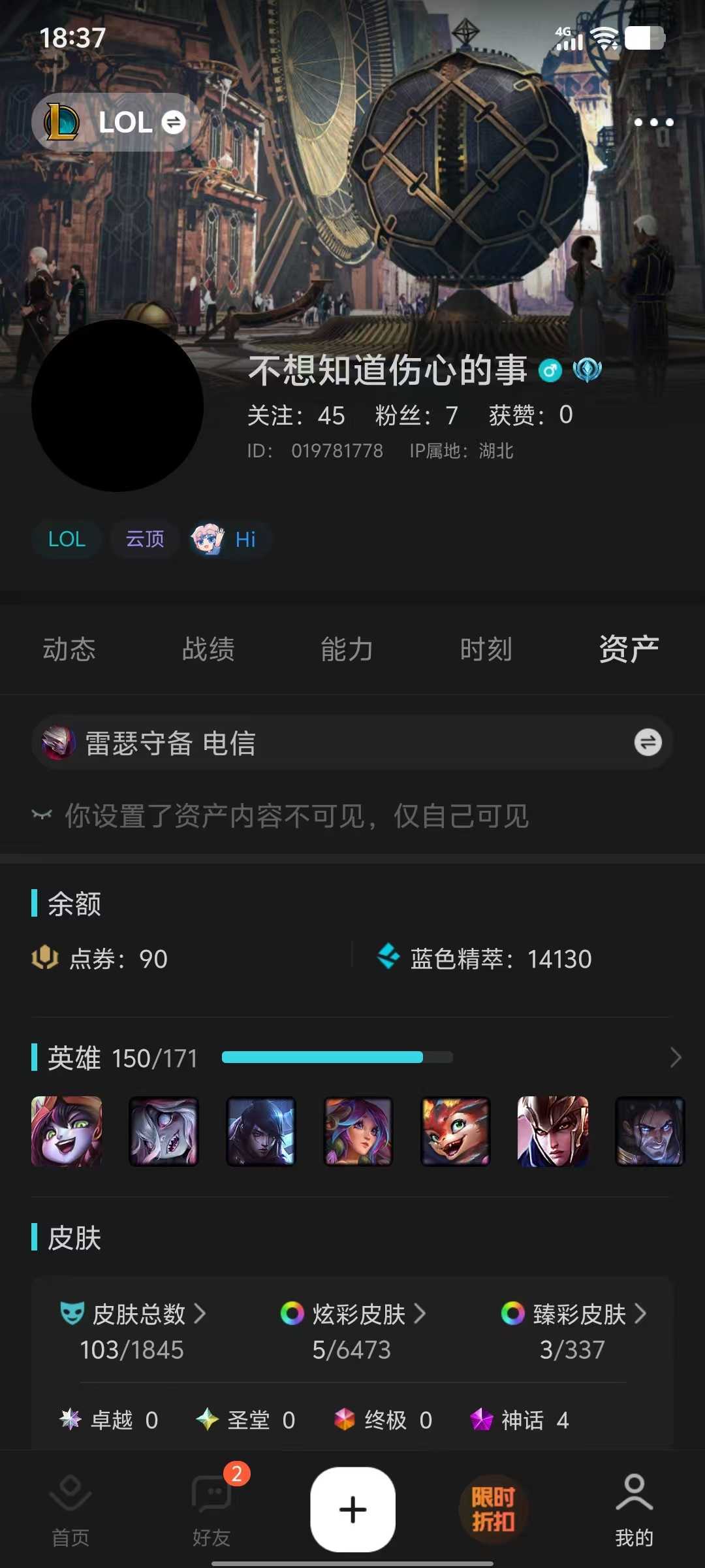 [联盟二区 103皮肤]150英雄103皮肤☁虐菜带妹专用号☁低段位可排位☁超多限定传说皮