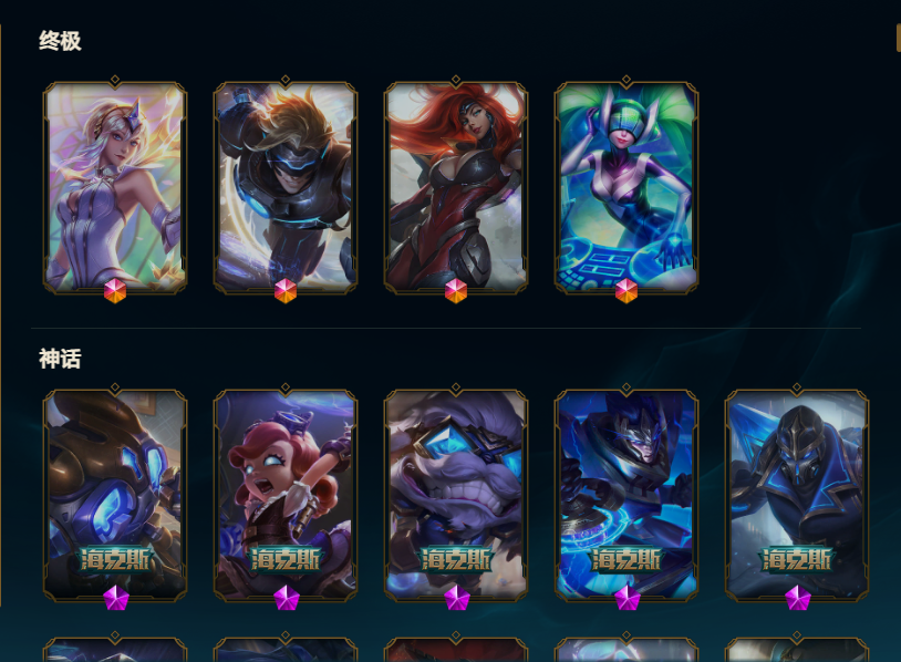 1017皮肤786炫彩30臻彩43神话全英雄龙虾各种限定皮肤多多