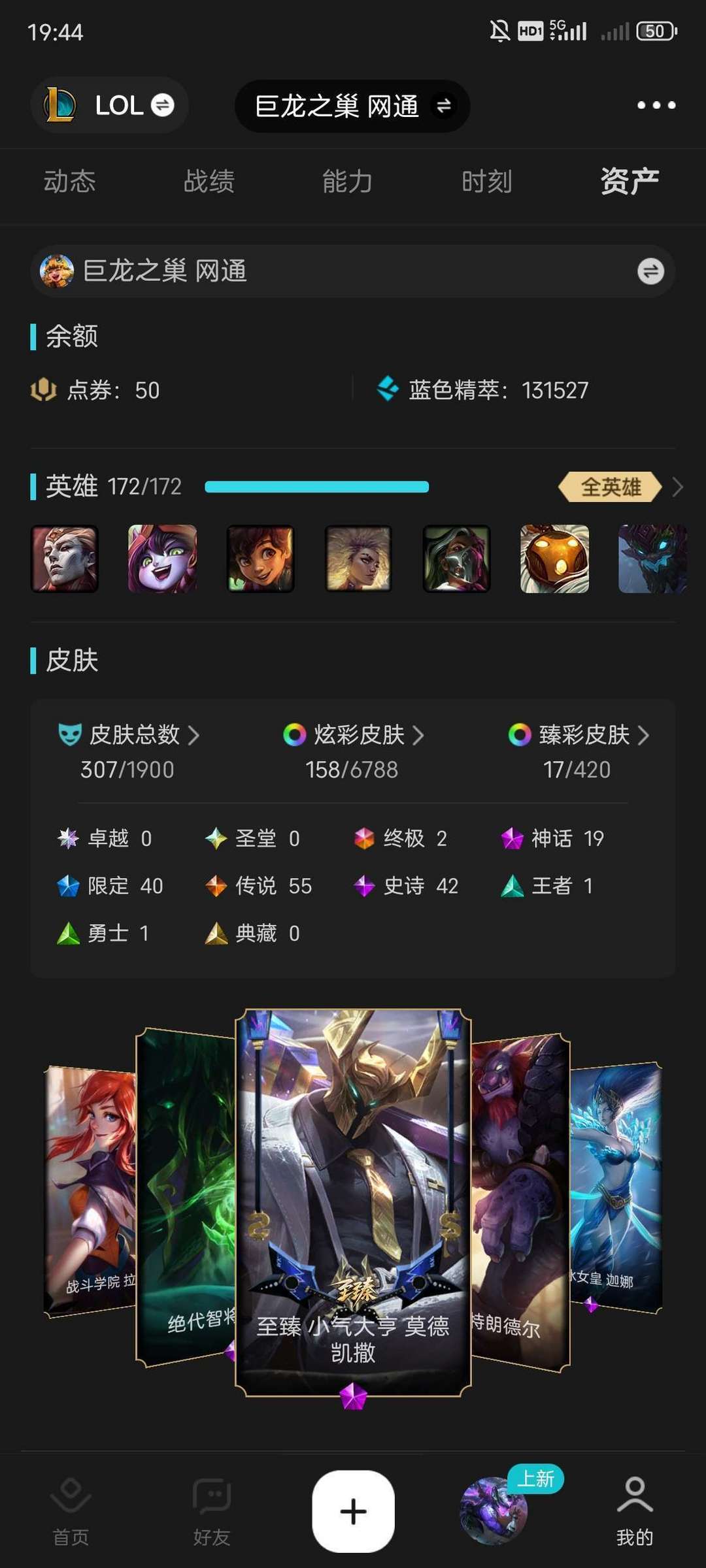300+皮肤五区可排位全英雄 55传说皮最新铁男至臻 几乎每个英雄都有好用高质量皮肤 都是精品皮肤