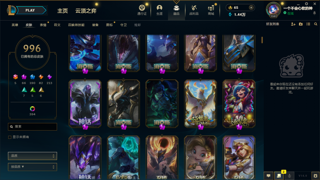 3000皮肤〓顶级号商城清空〓100至臻海克斯〓神龙尊者全皮全炫彩〓超多限定