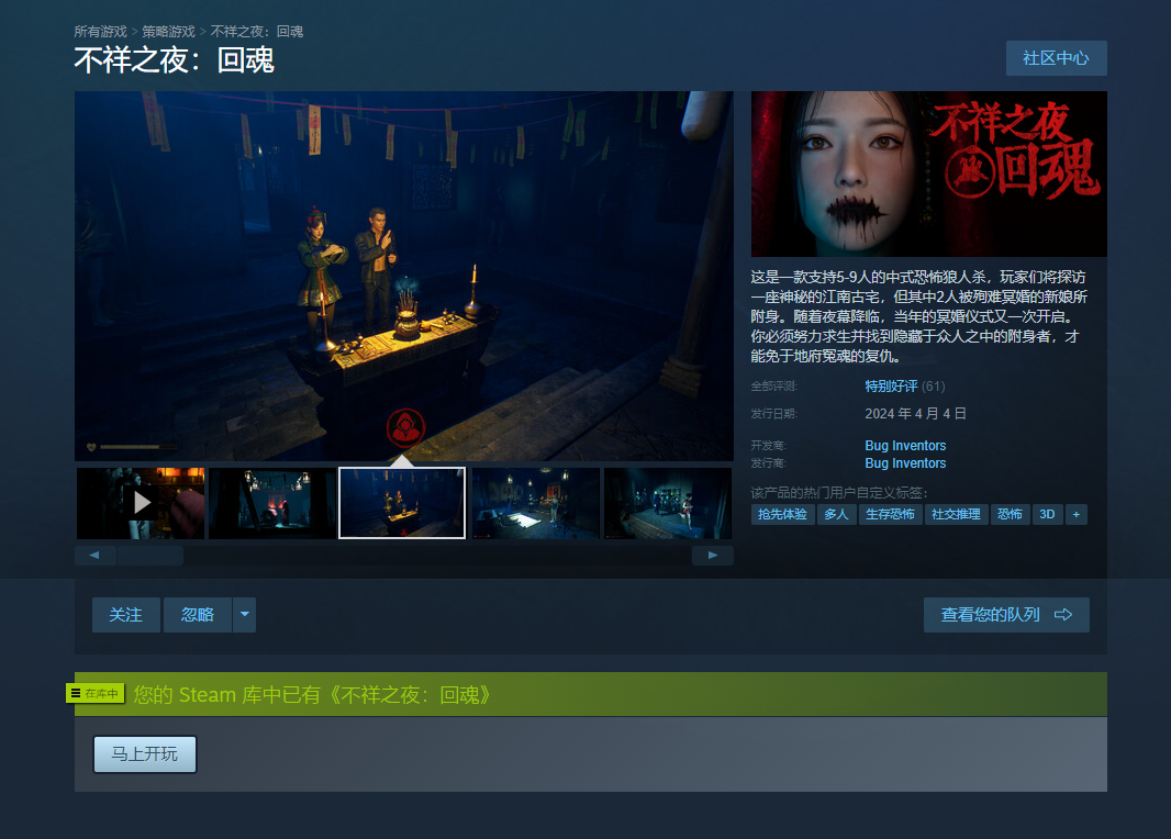 游戏区服:不祥之夜:回魂-steam-steam