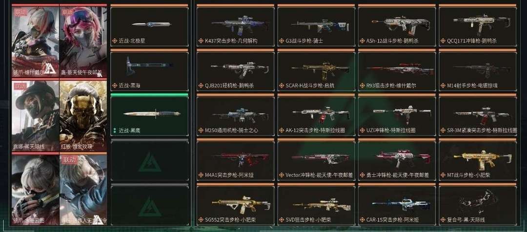 皮肤号 5红皮双刀皮35 金维什戴尔午夜邮差天际线蚀金玫瑰 水墨吴彦祖 北极星全套 黑海全套 满体满负重